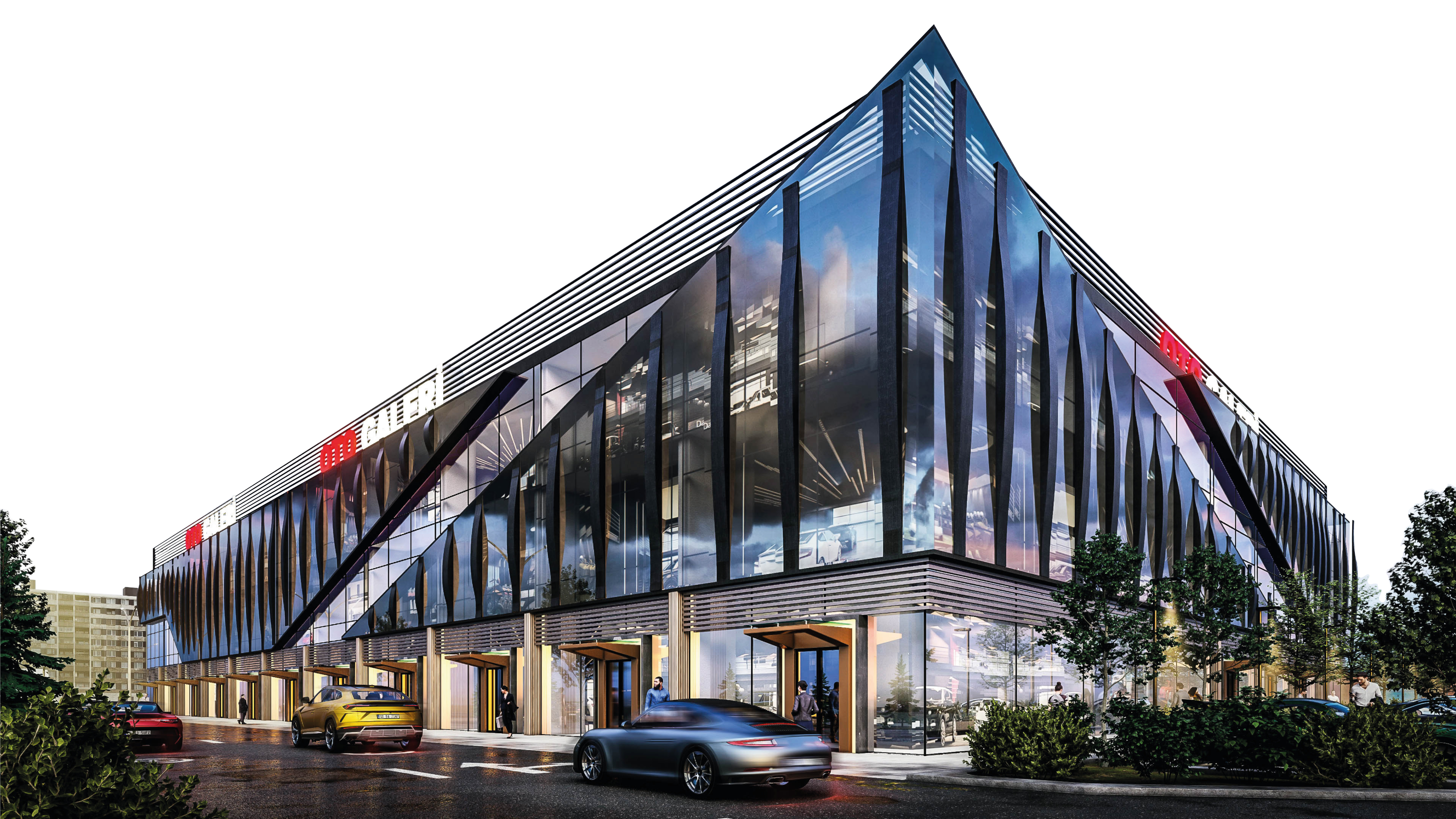 KOCALAR YAPI tarafından 2022 yılında tasarlanan 3 katlı bu mimari, çapraz cephe yapısıyla otomotiv sektörüne farklı bir yapıyla adım atıyor